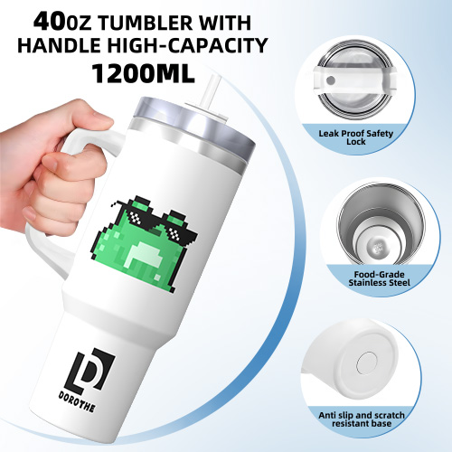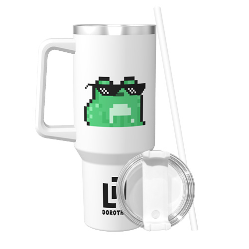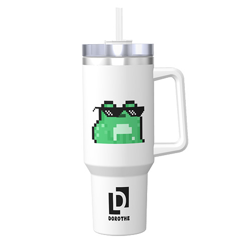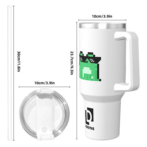 This 40 oz pixel-themed thermos cup is equipped with a convenient handle design and a large capacity, suitable for long-term outings or sports. The classic white color with a unique pixel art pattern is not only practical, but also shows a modern personalized style. Whether it is a large-capacity water replenishment or a long-term temperature maintenance of beverages, it is a good choice.