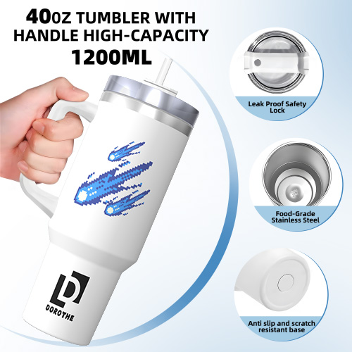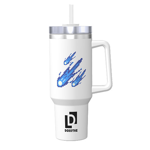 This 40 oz pixel-themed thermos cup is equipped with a convenient handle design and a large capacity, suitable for long-term outings or sports. The classic white color with a unique pixel art pattern is not only practical, but also shows a modern personalized style. Whether it is a large-capacity water replenishment or a long-term temperature maintenance of beverages, it is a good choice.